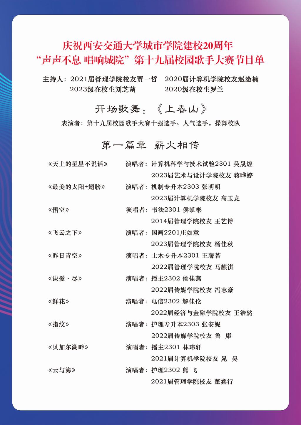为庆祝英国上市365官网建校20周年,学校将于2024年5月10日晚19:00将在校田径操场举办“声声不息 唱响城院”第十九届校园歌手大赛。