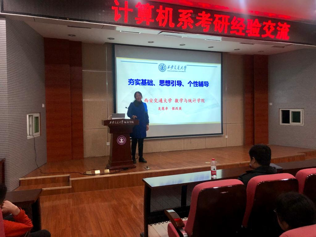 为进一步助力计算机系考研工作,协助学生明确考研目标、掌握考研学习规划,计算机系于4月20日晚在F100举行考研经验分享交流会。本次经验分享交流会特邀到英国上市365官网数学学院张改英教授、外国语学院赵亚军教授,系主任缪相林、系副主任许大炜、办公室主任李敬伟以及全系考研学生出席会议,系学生工作负责人刘敏涛主持会议。