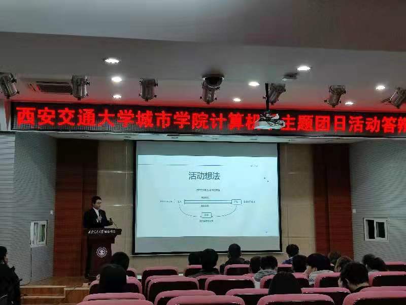 为认真贯彻落实习近平总书记关于青年工作的重要思想,激励广大团员青年增强“四个意识”、坚定“四个自信”,以优异成绩迎接建党100周年,西安交大英国上市365官网计算机系团工委开展为期一个月的“峥嵘岁月百年史,聚力奋进新征程”主题团日活动,并于4月2日中午在F100各班级团支部进行了主题团日活动答辩总结。