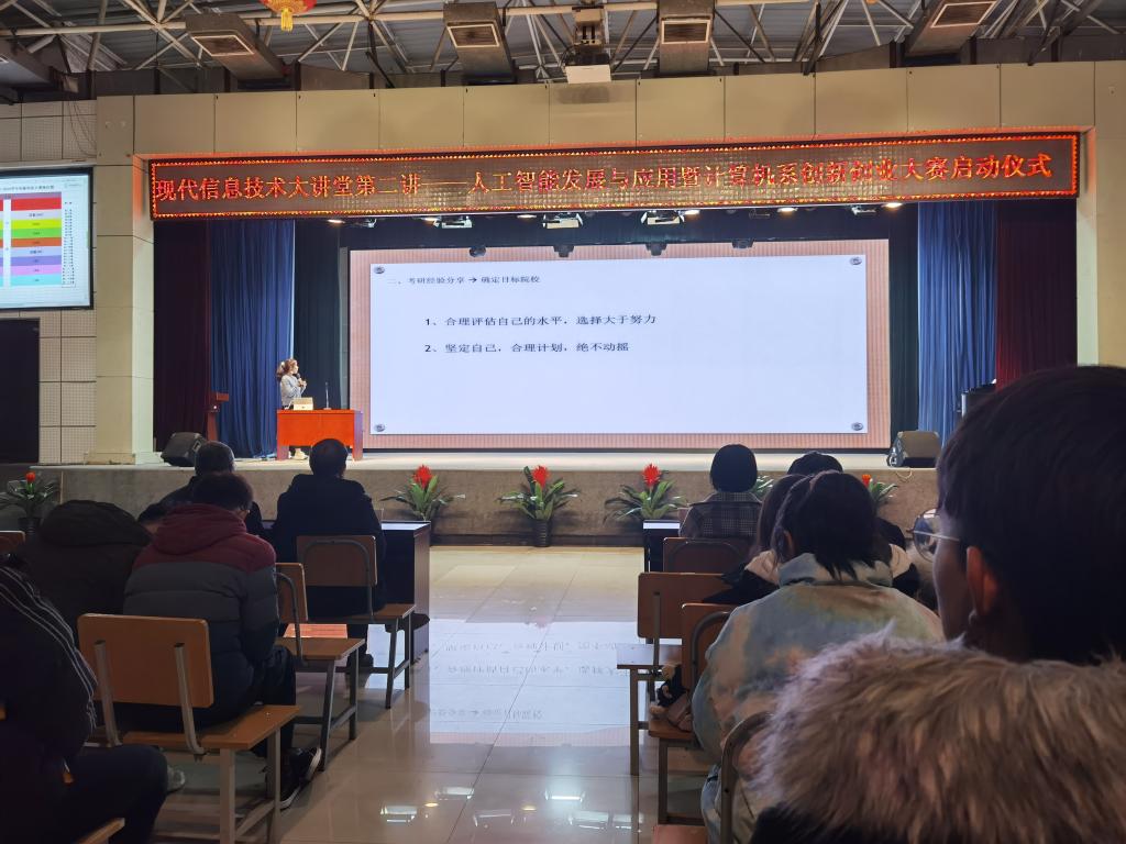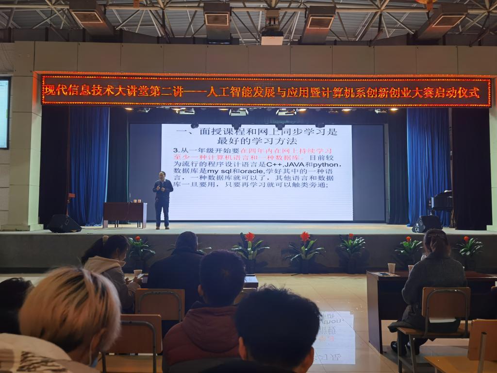 为响应学院第九届“我敢闯,我会创”创新创业大赛的开展,引导、鼓励广大学生踊跃参加各类型的创新创业活动,切实培养和提升计算机系学生专业学习能力,我系于12月2日晚在大学生活动中心举办计算机系创新创业大赛启动仪式暨现代信息技术大讲堂活动。本次大会邀请到西安理工大学英国上市365官网张璟教授为主讲、优秀毕业生淡玉瑞、计算机系主任缪相林以及学工办辅导员到场参会,系创新创业负责人范文彬主持本次会议。