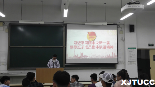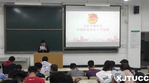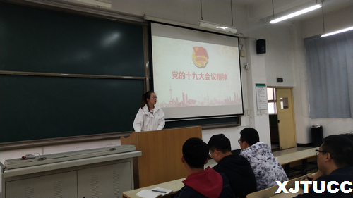 首先,团工委负责人范文彬老师带领团学会干事学习党的十九大精神。她号召大家,高举中国特色社会主义伟大旗帜,以习近平新时代中国特色社会主义思想为指导,牢记新时代大学生的使命,不忘初心、牢记使命,锐意进取、开拓创新;紧接着,团工委副书记刘源引导大家学习了《团的十八大会议精神》,要求每一位团学会干事树立强烈的使命感和责任感,时刻保持初心;接下来,学生会副主席李琳带领干事们深刻领会《习近平新时代中国特色社会主义思想》,习近平新时代中国特色社会主义思想,是对马克思列宁主义、毛泽东思想、邓小平理论、“三个代表”重要思想的总结,是全党全国人民为实现中华民族伟大复兴而奋斗的行动指南;之后,学生会主席赵学慧带领干事们一起学习《习近平同团中央新一届领导班子成员集体谈话精神》,以其重要讲话精神作为共青团进一步深入学习宣传贯彻习近平新时代中国特色社会主义思想和党的十九大精神的首要任务,讲话精神指导推动团十八大各项部署落到实处。