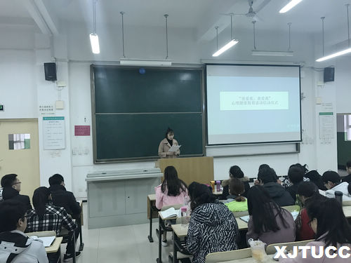 首先,王老师向同学们传达了本次主题教育活动的主要内容和具体要求等。接着,王老师用生动形象的个例说明同学们中出现的一些心理健康问题并向同学们介绍了多种自我调节、自我疏导的方法,帮助同学们在学习生活中保持积极向上的态度,远离心理健康问题。她希望同学们提高心理健康意识与自我保护能力,度过一个健康快乐的大学生活!最后,王老师对本次心理健康教育讲座进行总结,鼓励各班班委及心理联络员做好后期的班级心理辅导制度,积极开展心理健康主题班会及宣传教育,动员全班同学参与进来,创建一个健康的学习生活环境。