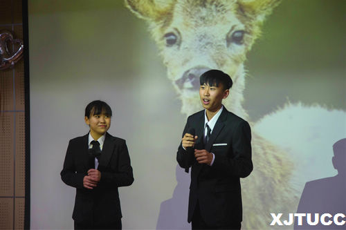 本次演讲比赛由刘方舟和赵凎楠同学主持,在一段精彩的开场舞表演过后,本场演讲比赛正式拉开帷幕。主持人介绍了此次演讲比赛的评委老师,并向大家宣读了比赛规则及评分标准。比赛第一环节七位参赛选手依次进行了形式多样的自我介绍与才艺展示,吉他弹唱、深情朗诵、相声互动赢得了同学们热烈的鼓掌及欢呼。本次演讲比赛还开通了微信公众投票平台,同学们可以为自己喜欢的选手投票。接着是来自几个不同省份的同学带来了的串场节目——“三句半”,夸张烦人表演形式引得同学们捧腹大笑。比赛第二环节由评委老师抽签决定选手的演讲顺序,选手们通过精美的PPT向评委介绍了别人眼中不一样的家乡,让大家了解到祖国的美景美食、名人古迹等。最后由主持人赵凎楠等同学带来的吉他弹唱将现场的气氛带入了高潮。