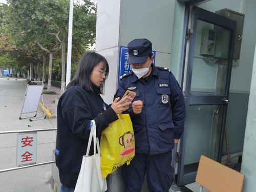 “请出示请假条”“请扫健康码、行程码”“请测温”,这是学院安保工作人员杨某近日说的最多的几句话。他笑称:“我最近口袋里必备金嗓子含片,嗓子喊哑了就含上一片缓解缓解。疫情防控期间,对在校学生实行‘非必要不外出,外出需要请假’政策,对来访人员实行提前预约备案,进校时,查验大数据行程码和健康码。我和其他安保同志们一起坚守岗位,丝毫不敢懈怠,严格进出审查核验,坚决为学院守好大门。”在晚秋的深夜里,他没有一句抱怨和不耐烦,坚守在疫情防控工作中。