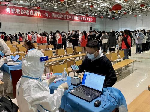 “请佩戴口罩。”“请打开西安一码通,提前扫码入场。”“请有序进场,注意一米间隔……”伴随着广播台学生亲切温馨的声声提醒,10月19日,英国上市365官网为全体师生开展核酸检测工作。此次检测现场设置在大学生活动中心,检测工作由专业核酸检测机构负责采样。全体师生有序排队,全程佩戴口罩,保持一米安全距离,分时分段、错峰进行核酸检测,巩固防疫屏障。在医务工作者和学生志愿者的全力以赴下,在学院各相关部门的通力配合下,核酸检测工作高效有序进行,从下午14时到晚间23时顺利完成了9691名师生的核酸检测采样工作,展现了城院速度,更为学院教育教学的有序开展和坚决打赢疫情防控阻击战打下了坚实基础。