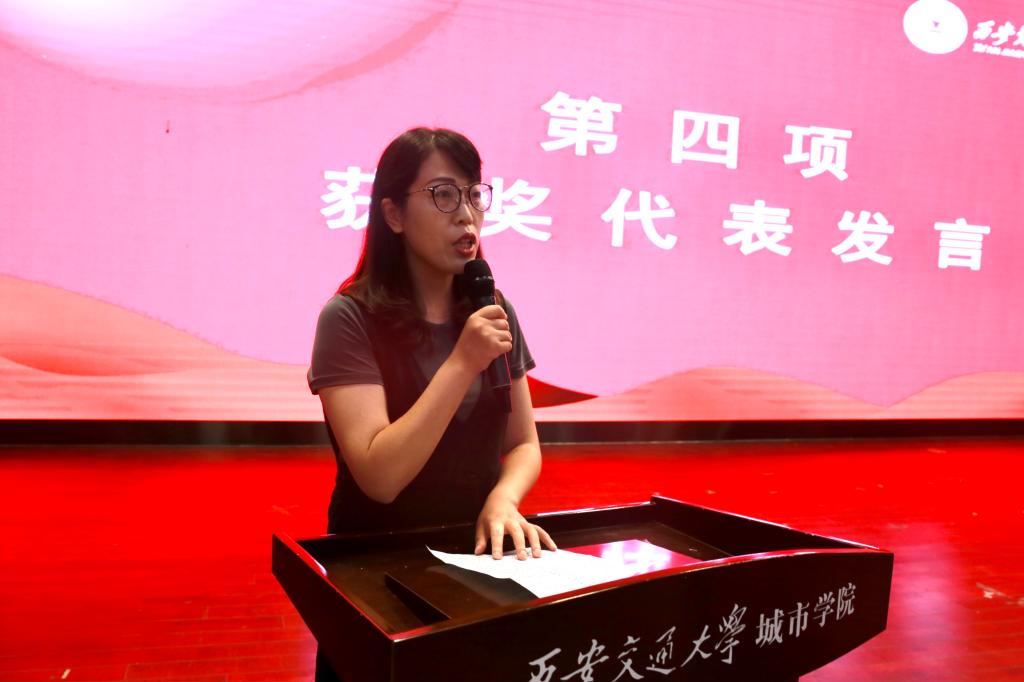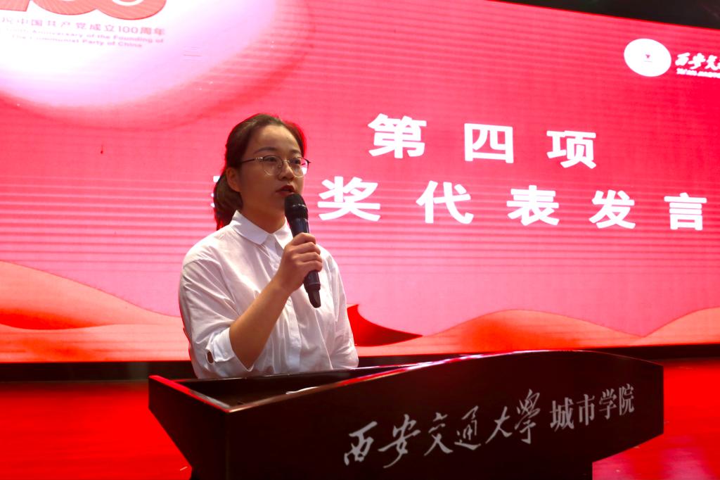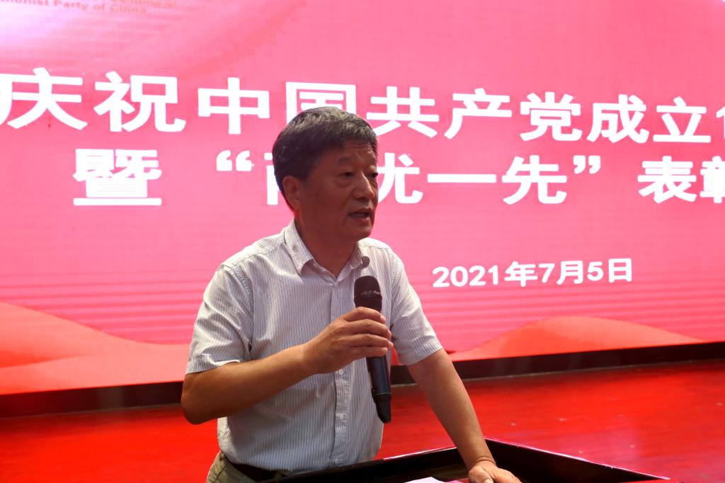 教工优秀共产党员代表管理系副主任、教工党支部书记解茹玉、学生优秀共产党员代表英语174班冯乐怡及先进党支部代表机关第二党支部书记辛红伟分别进行了发言。三位师生的发言展现了优秀共产党员、先进党支部的精神风貌。