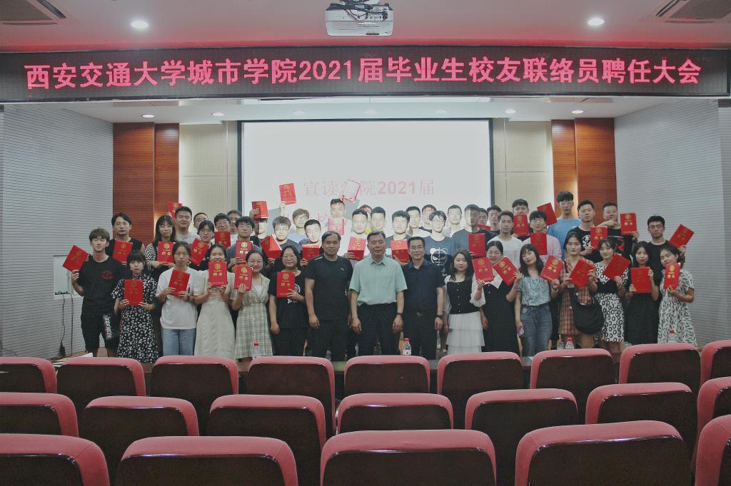 在建党百年之际,在2021届毕业生毕业之时,6月29日下午,西安交大英国上市365官网在F100报告厅举行2021届毕业生校友联络员聘任大会。学院院长陈光德,学院副院长、基金会秘书长兼校友办公室主任岳华海,学院保卫部部长兼校友办公室副主任陈涛,校友工作办公室相关工作人员及2021届新聘毕业生校友联络员参加聘任大会。大会由传播系罗莹同学主持。