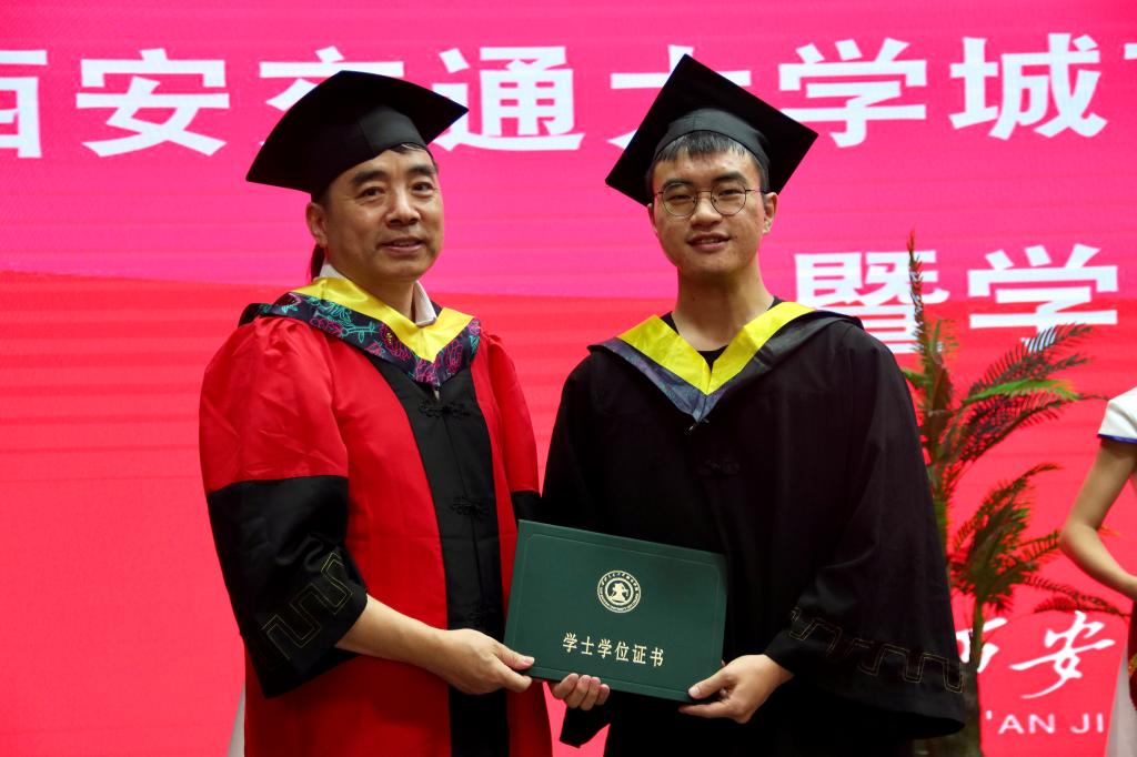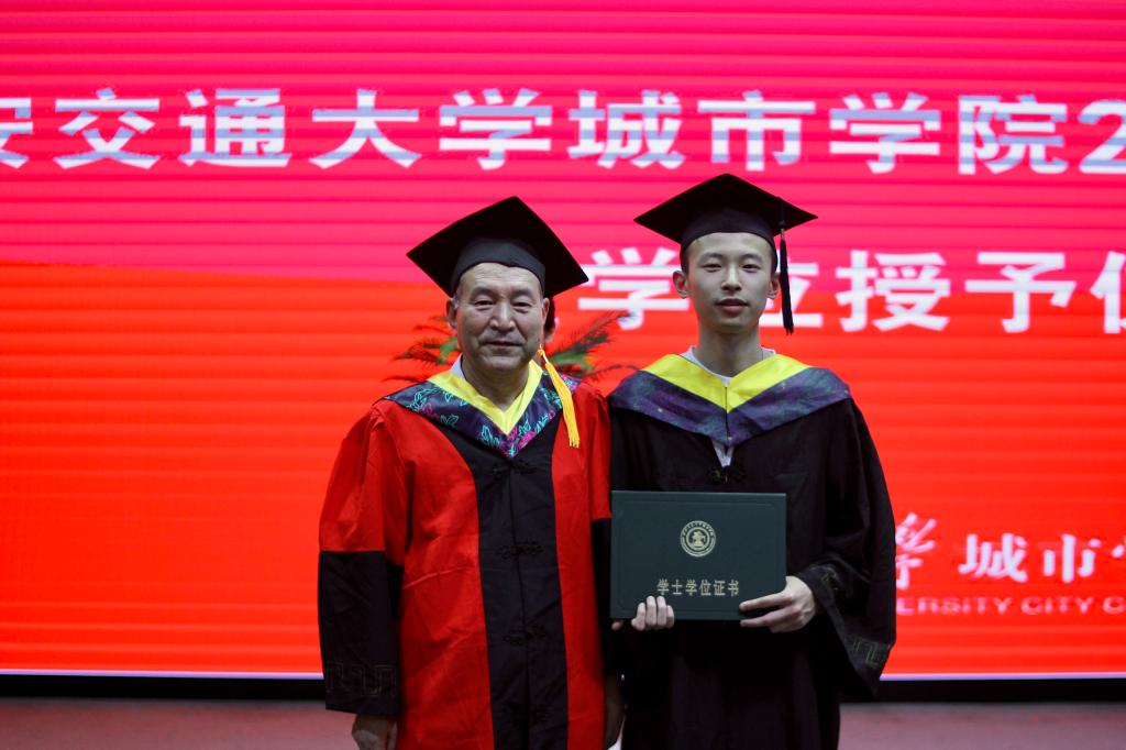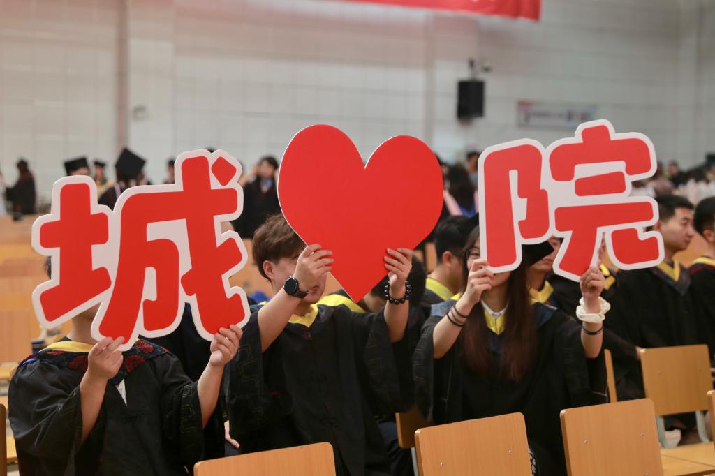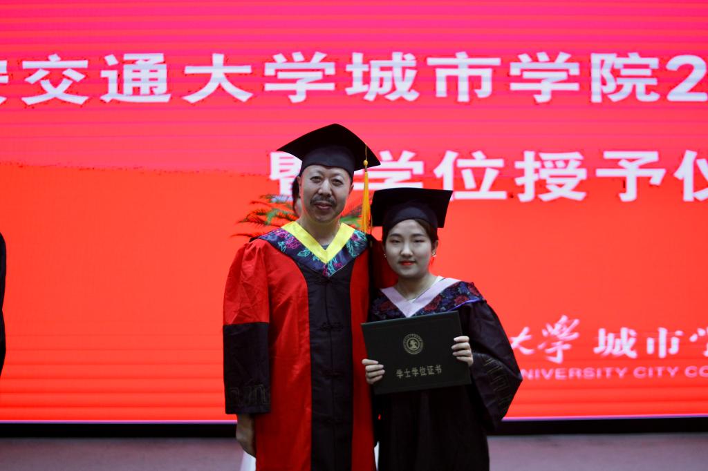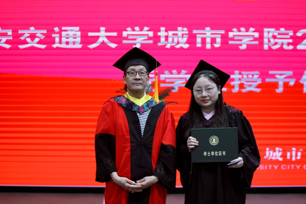 在艺术系国画171班董乐乐同学、金融172班张璐同学的带领下,全体毕业生集体进行宣誓:铭记尚德笃学,坚持守正创新;感恩父母养育,谨遵师长教诲;勇担时代使命,争做社会精英;肩负公民责任,报效祖国人民;为国家繁荣富强努力奋斗,让明日的交大城院以我为荣!大家声音洪亮,场面庄严而隆重。