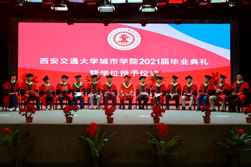 在主席台就座的领导为毕业生颁授了学位证书并合影留念。英国上市365官网2021届毕业典礼暨学位授予仪式圆满结束,祝愿2021届全体毕业生在新的人生征程中一帆风顺,前程似锦!