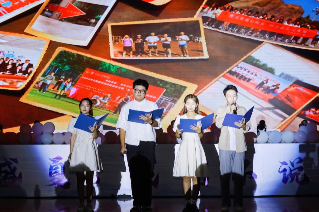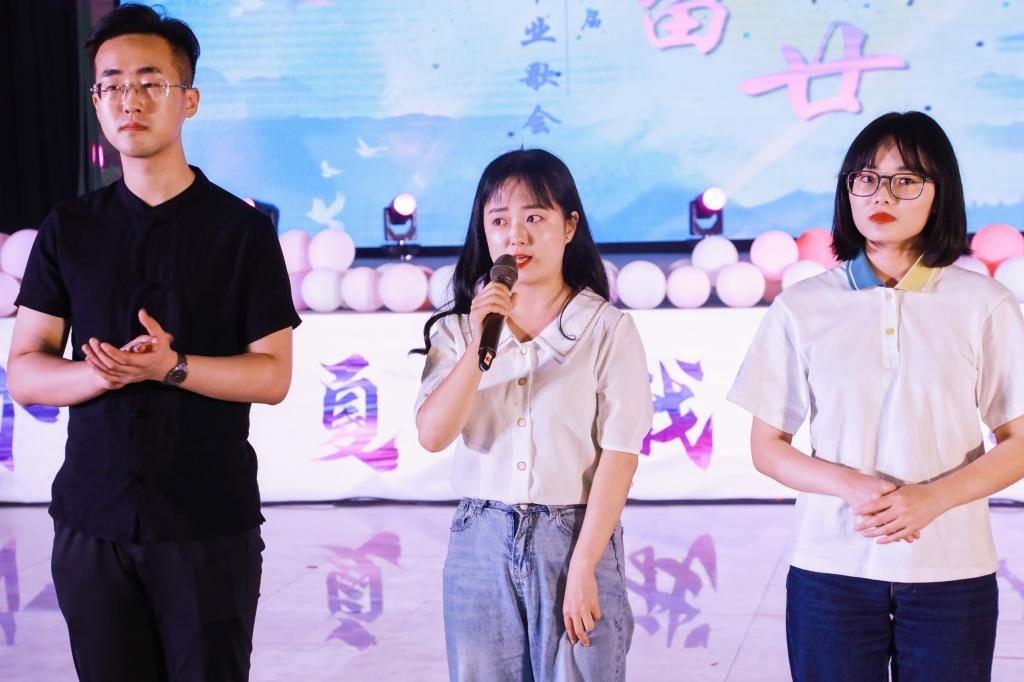 随后,玖月话剧社的同学们带来情景朗诵《尚稷路8715号的日子》,一同怀念那些与城院相遇相知的日子。接下来,全场观众跟随《城院新闻联播》深情的独白,一起进入时光隧道,追忆只属于2018级毕业生的青春故事,毕业生代表陆佳琪、鲁康、陈弈如在故事的最后用歌声唱出了心中不舍。魏婷婷、刘钰彤、王爽等毕业生们更是在这启程的时刻,含泪告白母校,以18级城院学子的身份,最后再道一句“我爱你,城院,我们不说再见!”