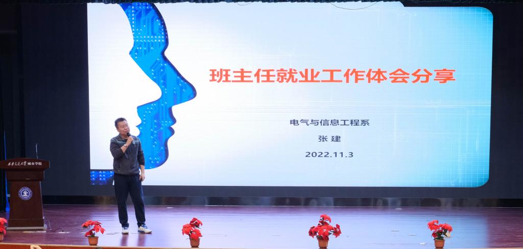 就业工作先进集体代表机械工程系主任助理吴昊翔、就业工作先进个人代表电气与信息工程系主任助理张建分别就针对2022届毕业生就业工作作了交流发言。