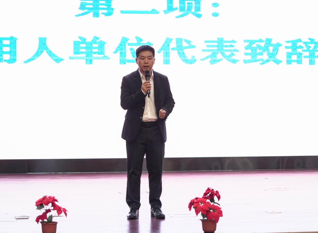华为终端有限公司陕西终端服务主管刘剑作为用人单位代表致辞,他首先对一直以来校企双方的真诚合作表达感谢,并从企业角度出发介绍了对当代高校毕业生的用人需求标准,并就学生实习实践和联合培养等方面期待与学院更深入合作。