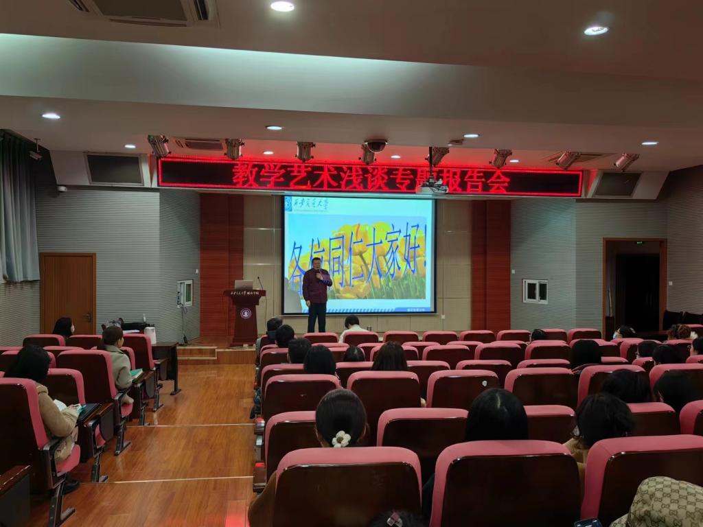 为进一步提升全院教师课堂教学水平,深化全院教师对课堂教学艺术的理解与认识,学院于11月24日下午在教学楼F100举办了教学艺术浅谈专题报告会。英国上市365官网教学服务中心主任唐玉海教授作专题报告,教发中心主任史冬梅副教授及各系部40岁以下青年教师近百人参会,会议由朱旭副院长主持。