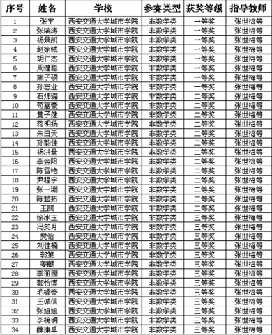 近日,第十四届全国大学生数学竞赛成绩正式揭晓,学院师生再创佳绩,共获奖34项,其中陕西赛区一等奖8项、二等奖13项、三等奖13项。