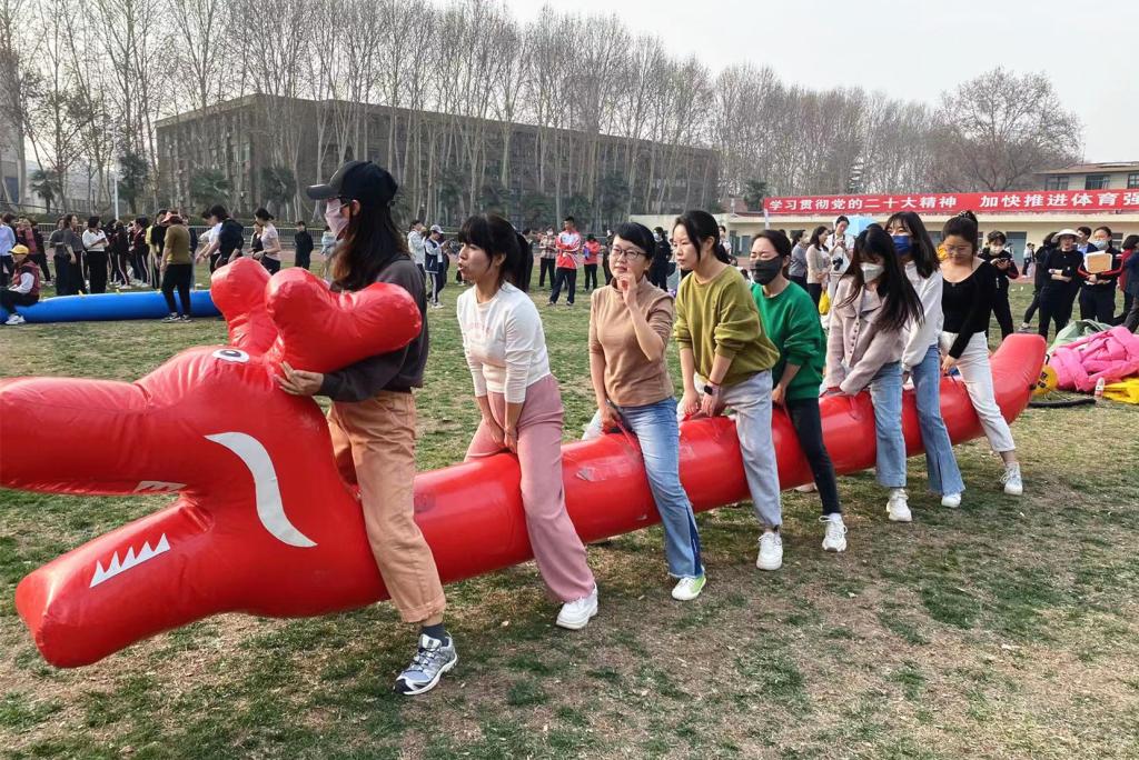 本次趣味运动会设有“团结奋进”、“怀抱梦想”、“乘风破浪”和“同心同向”四个比赛项目。各项目环节内容新颖,兼具趣味性和竞技性。学院的参赛女教职工们通力配合,个个情绪高涨、斗志昂扬,尽情享受着运动带来的欢乐,从观赛区传来的掌声、喝彩声、加油声不绝于耳,充分展现了女教职工队伍朝气蓬勃、奋发进取的精神面貌。