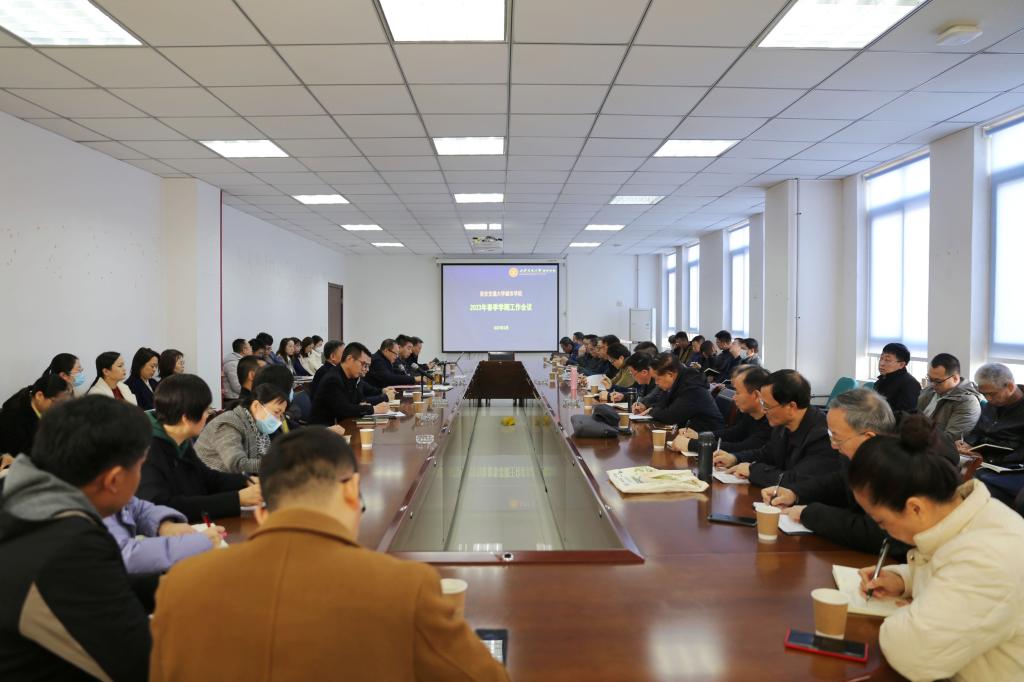 会上,陈光德院长传达了陕西省教育厅相关会议精神并对2023年学院工作进行了部署和安排,重点强调做好人才培养和队伍建设两方面工作。人才培养是学院的中心工作,要落实立德树人的根本任务。积极推进“双一流”建设;通过改进教学方法和手段等着力提升教学效果以及教学质量;提高教学管理能力;做好新版人才培养方案的修订工作;增强科研能力;加大专业建设力度,提高专业建设质量,不断形成学院自身发展特色。加强队伍建设。以教师队伍建设为核心,多措并举抓好人才引进和教师培养工作,为青年教师的快速成长搭建好平台,为学院健康可持续发展奠定师资人才基础。加强干部队伍建设,提升干部队伍能力。全院上下要提高政治站位,明确发展方向,按照上级单位的相关要求积极推进学院转设工作,全力保障转设过程中各项工作平稳安全推进。希望全院上下同心协力,凝聚共识,守牢安全稳定工作底线,持续稳定地推进学院各项工作再上新台阶,不断提升学院的社会声誉和影响力。