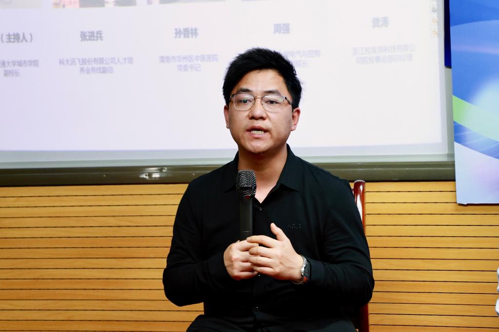 校企圆桌对话环节由朱旭副校长主持。对话嘉宾有科大讯飞股份有限公司人才培养业务线副总张进兵、陕西科技大学电气与控制工程学院副院长周强、渭南市华州区中医医院党委书记孙香林、浙江校友邦科技有限公司院校事业部总经理龚涛。张进兵针对科大讯飞基于行业需求分析进行校企联合培养人才的探索与实践进行了交流;周强教授分析了高层次应用型创新人才培养中存在的问题,分享了陕西科技大学“全员科创”校企协同育人案例;孙香林针对学校、医院联合培养护理与康复技能人才的实践进行了交流;龚涛分享了“校友邦”数字化赋能产教融合高质量发展的探索与实践。随后,陕西金宇航空科技有限公司总经理冉磊、英国上市365官网院长姚全珠教授对人才培养、校企协同育人的下一步设想分别作了发言。