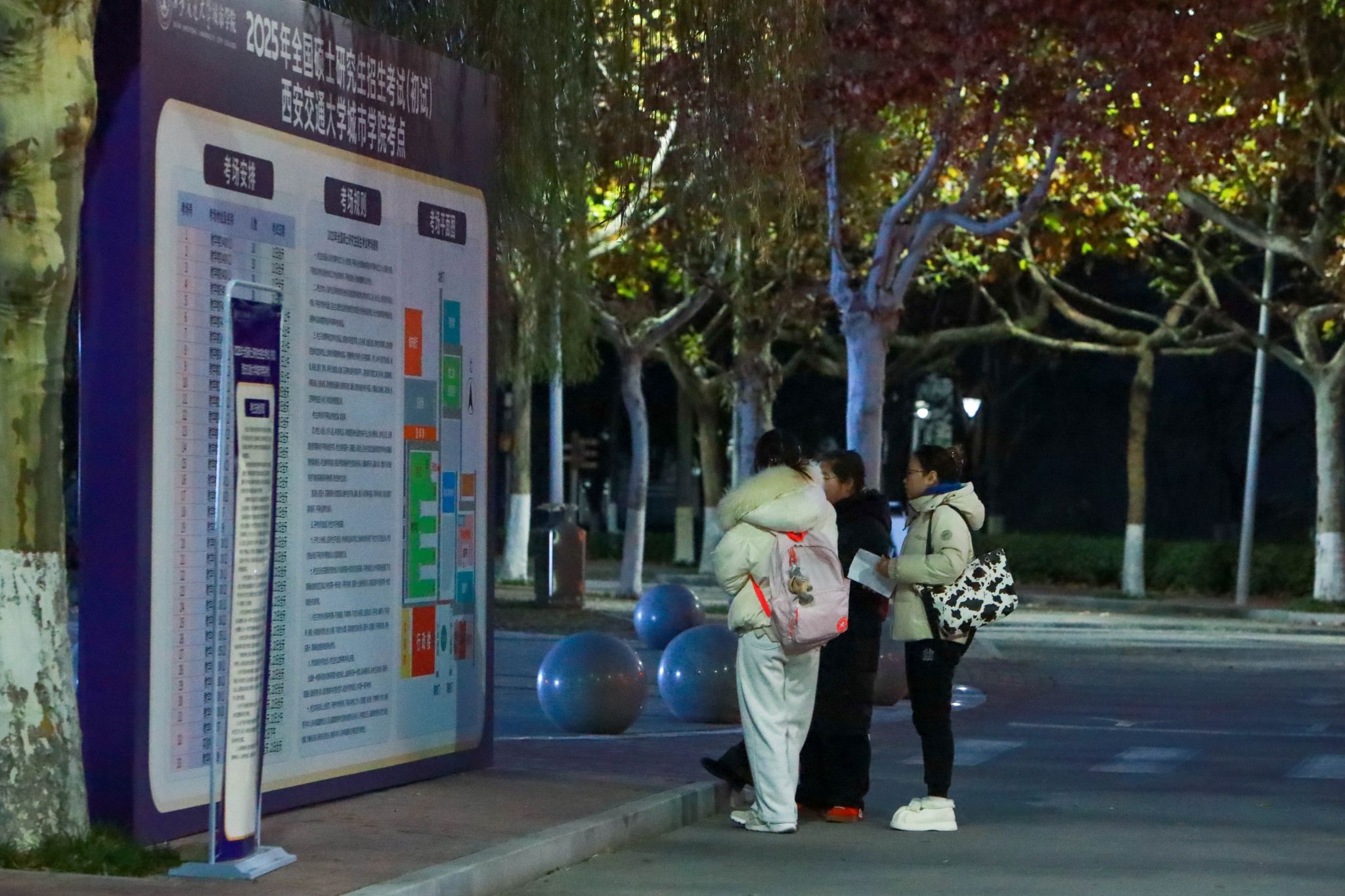 全校各相关部门通力配合,认真做好考试组考工作,对考生进校、安保规范、校园考试环境布置、考务组织与应急预案等进行了周密安排。3个志愿服务点、60名学生志愿者全天候为考生提供考场指引、物品存放等服务,为研考的顺利进行提供有力的保障。