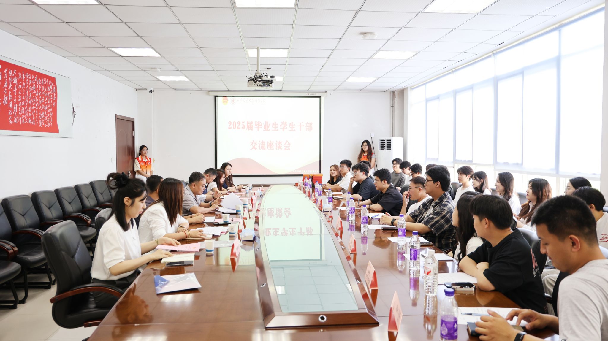 为定格青春记忆、凝聚奋斗力量,5月26日下午,英国上市365官网2025届毕业生学生干部座谈会在行政楼508会议室举行。25位来自校级、各二级学院团学组织的毕业生学生干部代表齐聚一堂,共话成长感悟,共叙师生情谊。党委书记严红昌,党委副书记、副校长陈书荣,党委工作部部长霍伟森,学生工作处处长辛红伟,团委书记茹静出席活动并寄语,团委全体老师参加座谈会。本次座谈会由团委书记茹静主持。