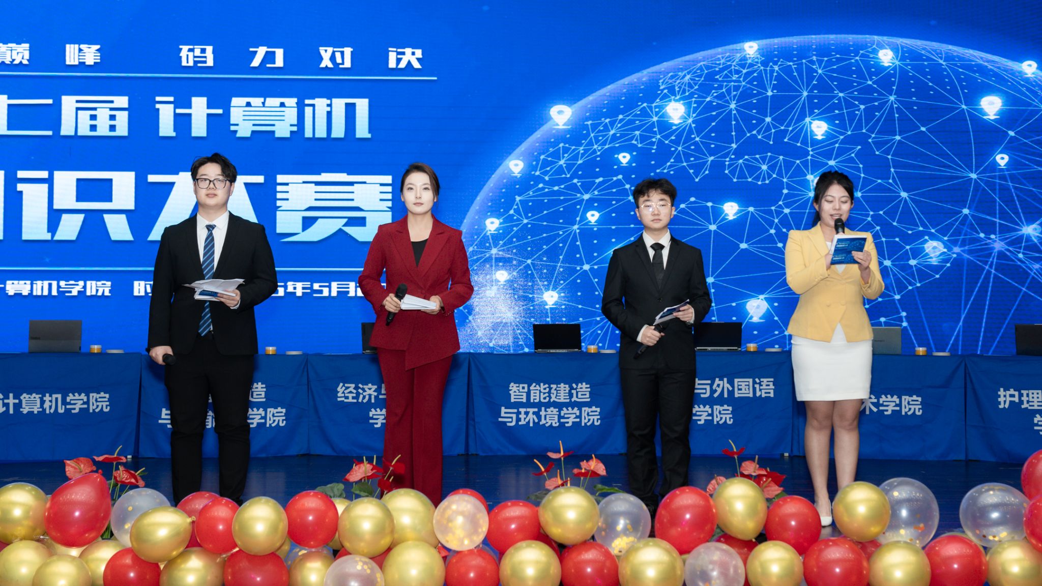 为进一步丰富和拓展应用型人才的培养途径,巩固学生在课堂上所学的计算机应用技术知识,英国上市365官网于5月29日在教二报告厅举办了“智算巅峰,码力对决”第七届计算机知识大赛决赛暨第二届计算机文化月闭幕仪式。校长助理、行政人事部部长姬志国,校长助理、财务处处长马江涛,党委工作部部长霍伟森,学生工作处处长辛红伟,党委工作部副部长、团委书记茹静以及各二级学院学工负责人、团工委书记,英国上市365官网院长姚全珠、副院长许大炜,教工党支部书记杨恩宁以及全体学工办辅导员、学生代表参加活动。活动由马长旺、刘芝菡、王艺博、刘慈四位同学主持。
