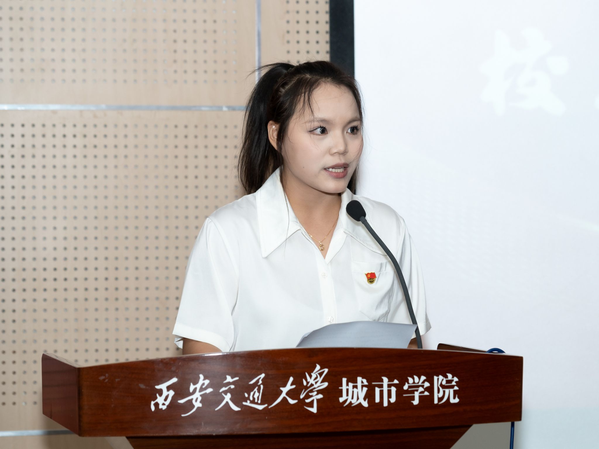 计算机2101班郭萌同学作为2025届毕业生校友联络大使代表进行发言。她表示非常荣幸能被推选为2025届毕业生校友联络大使,并勉励125名校友联络大使做尚德为本的“情感守望者”、做笃学不倦的“精神传递者”、做守正创新的“使命担当者”,在未来肩负起城院人的责任担当,做好连接母校与广大校友的纽带和桥梁。