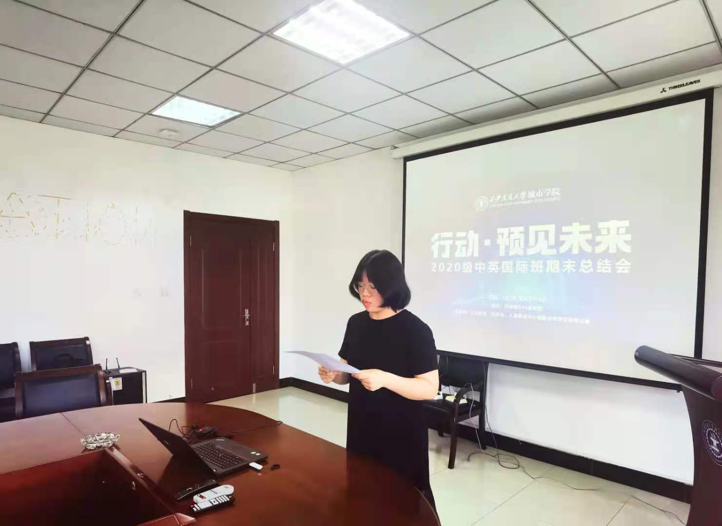为了更好地让国际班学生回顾一学年的得失,把握当下,展望未来,2021年7月7日下午4点,学院2020级计算机/金融国际班在行政楼504会议室召开主题为“行动•预见未来”的期末总结会。计算机系主任缪相林、经济系副主任杨建全、国际班学工负责人廉宇婷、国际班班主任任远、人事中心外事办相关老师出席了班会。活动由计算机国际班班长王佳豪主持。