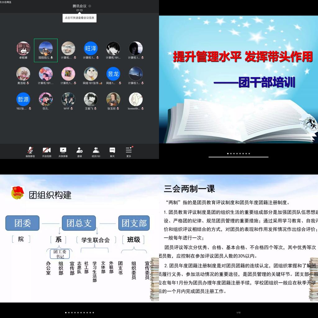 为充分调动广大团员青年的积极性,号召先进青年为抗击疫情发挥主人翁精神,贯彻落实习近平新时代中国特色社会主义思想,以更好的状态迎接十四运,英国上市365官网计算机系团总支开展“疫情防控齐努力•创文创优争先锋”为期一个月的主题团日活动,并于10月24日晚线上开展团课基础理论培训暨主题团日活动总结会,至此,计算机系主题团日活动圆满结束。