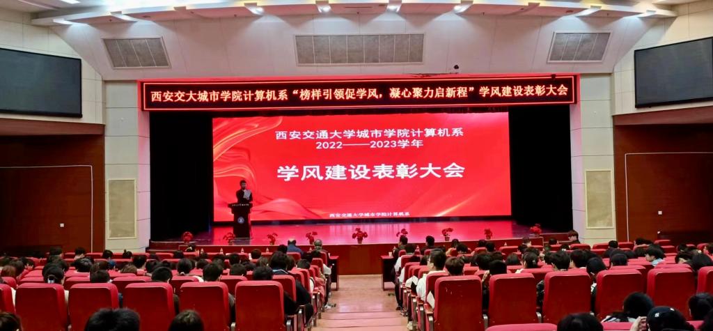 为了营造积极向上、严谨诚信、求实务新的学习氛围,传播优良学习之风,在过去一学年中计算机系举办了最美笔记评选、晨读打卡、翱翔计划等多项学风建设活动,并组织成立了计算机系学风宣讲团、学风“领航员”等多名优秀朋辈团体,旨在激励计算机系全体学生端正学习态度,培养和鼓励各级学生相互学习与借鉴,切实促进学生的全面发展。为表彰优秀、鼓励先进、树立典型,英国上市365官网计算机系于4月7日中午在教二报告厅举办了“榜样引领促学风,凝心聚力启新程”学风建设表彰大会。系主任姚全珠教授、副主任许大炜、主任助理刘敏涛、2022级班主任段竹以及全体辅导员老师出席本次大会。全体获奖学生、计算机系2022级学生参会。
