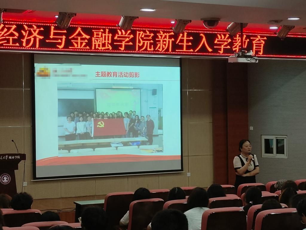 经济与金融学院于9月11日在F100召开2024级新生入学教育之党团启蒙教育,本次会议由经济与金融学院学生党支部书记廉宇婷、团工委书记蒋美一帆主讲,2024级全体新生参加。