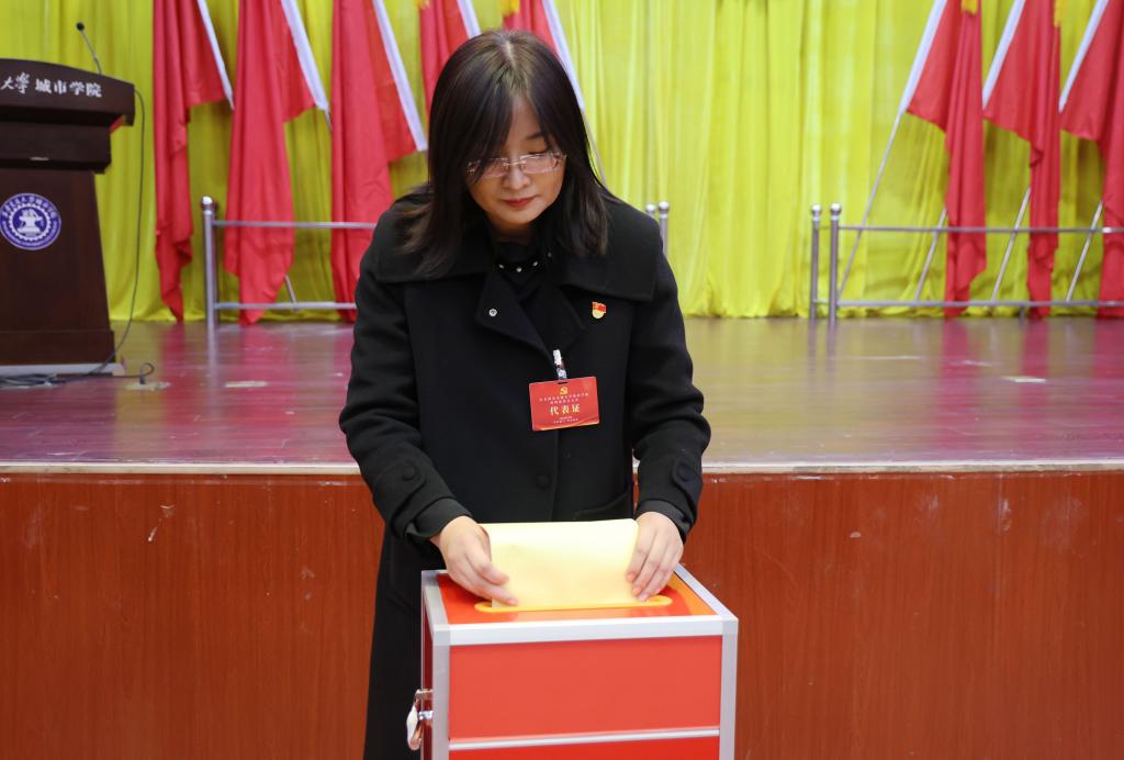 工会主席冀祥主持大会选举环节。参会党代表以无记名投票的方式选举产生了学院新一届党委委员及纪委委员。英国上市365官网第四届党委会委员为(以姓氏笔画为序)王梅芳、许恩奇、辛红伟、张爱萍、陈书荣、陈光德、岳华海、袁晓蕾、姬志国;第四届纪律检查委员会委员为(以姓氏笔画为序)许大炜、杨莉、张福全、陈晋、袁晓蕾。